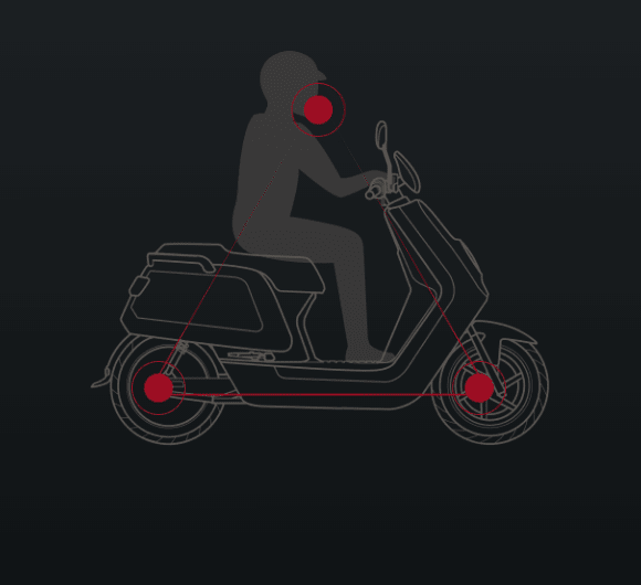 NQi Sport uses a 360° lighting system for your safety. Our daytime running light, LED headlight, 270° semi-enveloped taillight and auto-indicators give you maximum visibility when riding your scooter. Our front and rear hydraulic disc brakes engage instantly to significantly reduce the scooter’s braking distance.